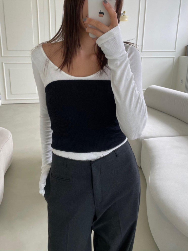 리버 언발 커브 티셔츠 & 에크미 소프트 탑 / 레이어드 코디 추천 30대 여자 쇼핑몰 씨엘쇼룸