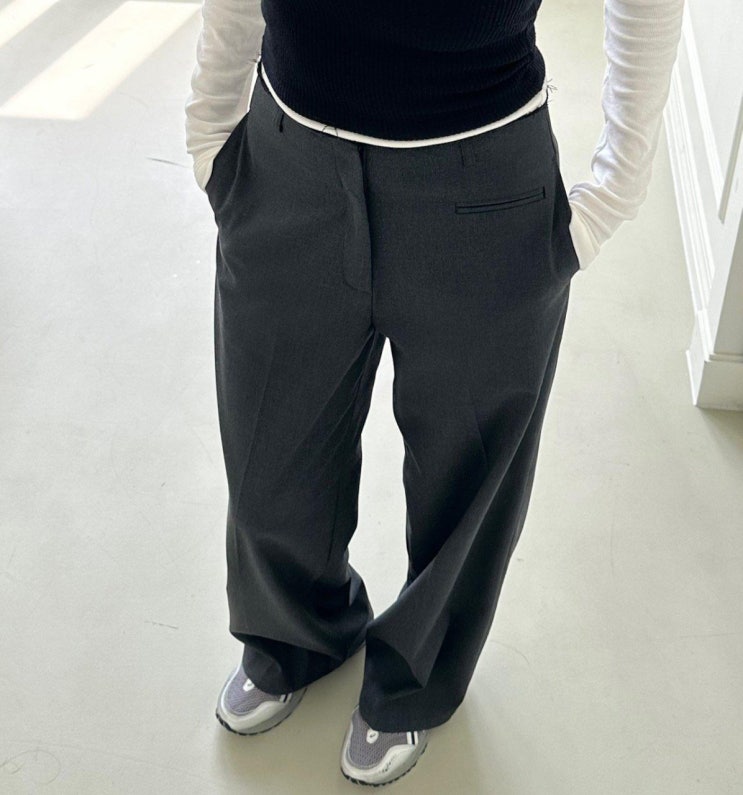 컷팅 슬랙스 23FW 신상 팬츠 소개해요 깔끔하게 일자로 툭 떨어지는 슬랙스입니다 왼쪽 부근 리얼 포켓으...