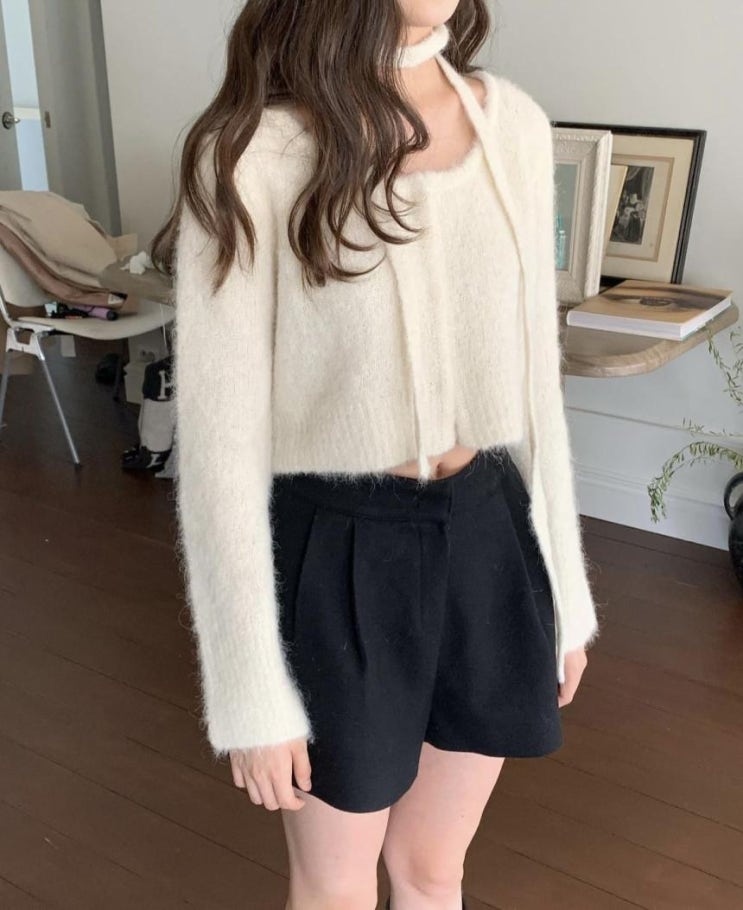 리에뜨 레브 알파카 가디건 긴팔 유넥 크롭 니트 3color 23FW