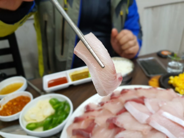 지난 주말 오랜만에 겨울 산행을 한 이후에 가끔 들리는 횟집에서 대방어회 한접시 했습니다. 회를 아주 깔...