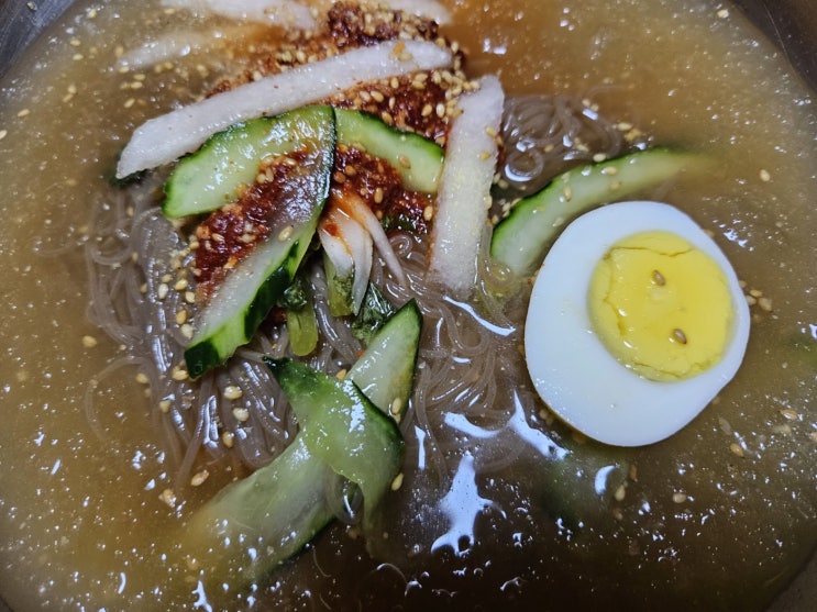 날씨가 더워서 냉면 맛집으로 유명한 시원한 왕곱배기 냉면을 배달시켰습니다.^^* 시원한 어름이 동동 왕꼽...