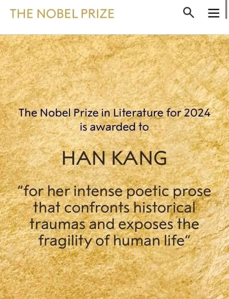 한강 작가님 노벨문학상 수상!!!