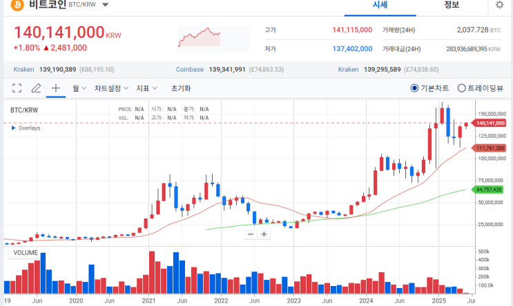 비트코인 글 쓰는 기준해서 아주 미친 듯이 오름 사상 최고가 117K까지 도달했음 최근에 108k~109k 구간에...