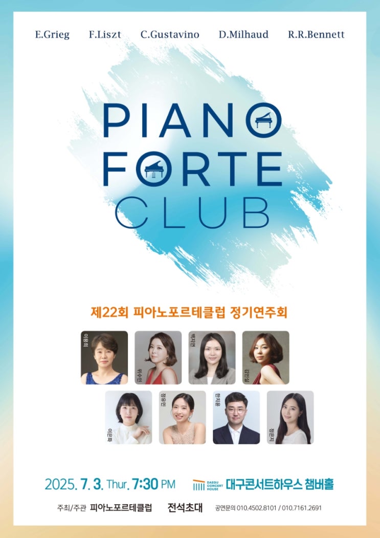 - 공연 소식 - 7월3일 오후7시30분에 대구콘서트하우스 챔버홀에서 제22회 피아노 포르테 클럽 정기연주회...