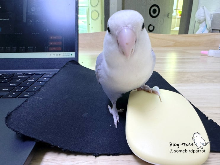 모란앵무 키우기 / 생후 8개월 반 아기 앵무새 옹심이 태어난 지 8개월 반이 된 모란앵무 옹심이에요. 동그...