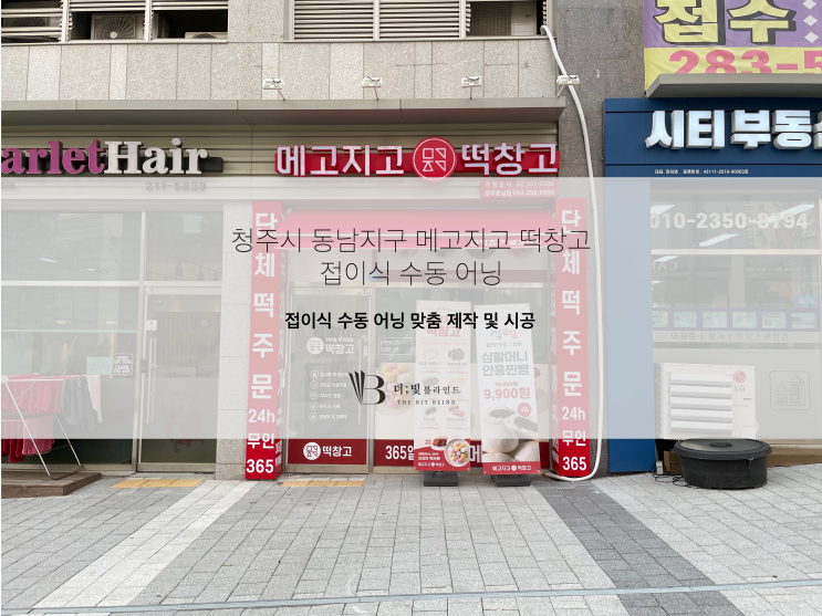 청주 금천동 메고지고 떡창고 접이식 수동 어닝 시공 후기