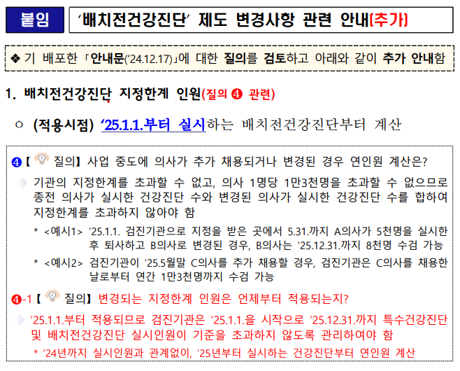 배치전건강진단 지정한계 인원 배치전건강진단 제도 변경 특검, 배치전 따로 1차 2차 의사 다른 경우 따로 ...
