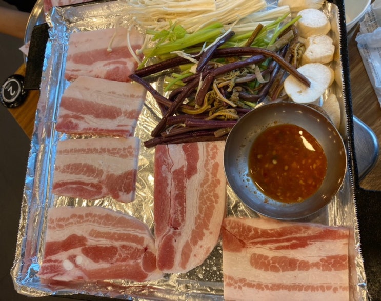 동탄 냉삼 맛집 역북집 목동점 미나리와 고사리 버섯 구워 먹어요.