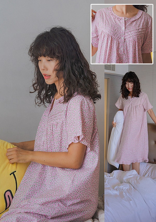 여름 반팔 원피스잠옷 메이플라워 꽃무늬 순면 파자마 사랑스러워