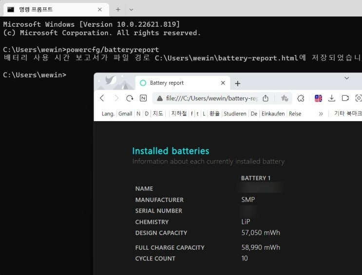 노트북(랩탑) 배터리 리포트 확인하기: 남은 수명, 싸이클 등 확인 가능