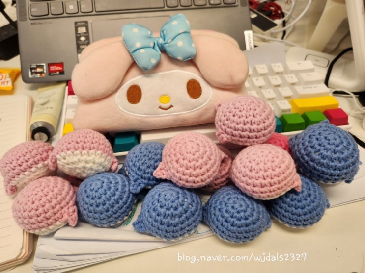 삐애로 인형을 만들었었죠 ㅋ 알록달록한 색에 반해서 뭔가 홀리듯떠서 완성한 삐애로 인형이예요^^ 크기도...