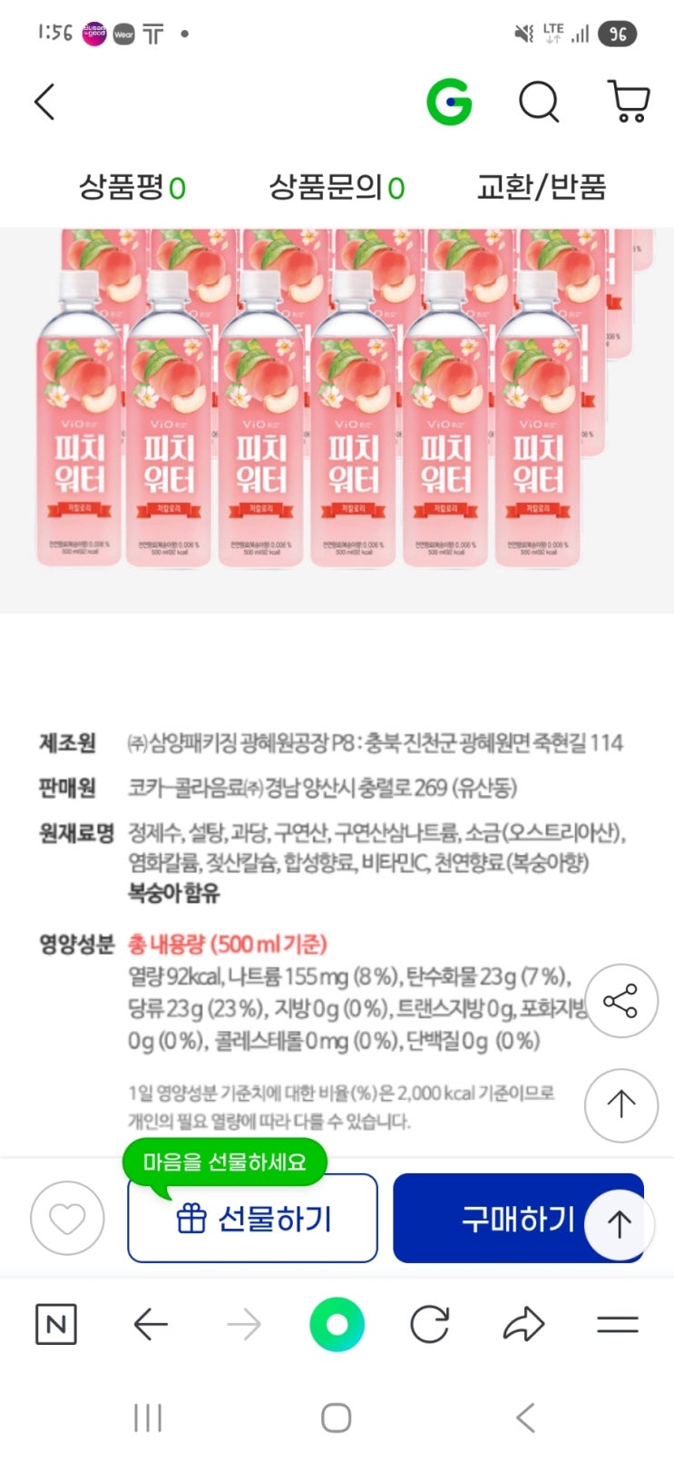 한국판 이로하스가 출시됐다. 판매원코카콜라 제조사삼양 근데 내가먹던 휘오피치워터가.. 한국판 이로하스...