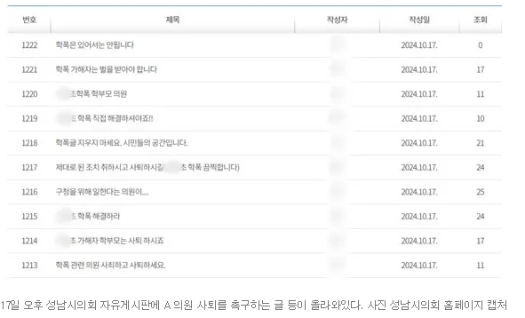 동급생 모래 먹인 초등생 학폭 학교폭력 시의원 자녀 성남시의회 국민의힘 소속 A 의원 누구 동급생 모래 ...