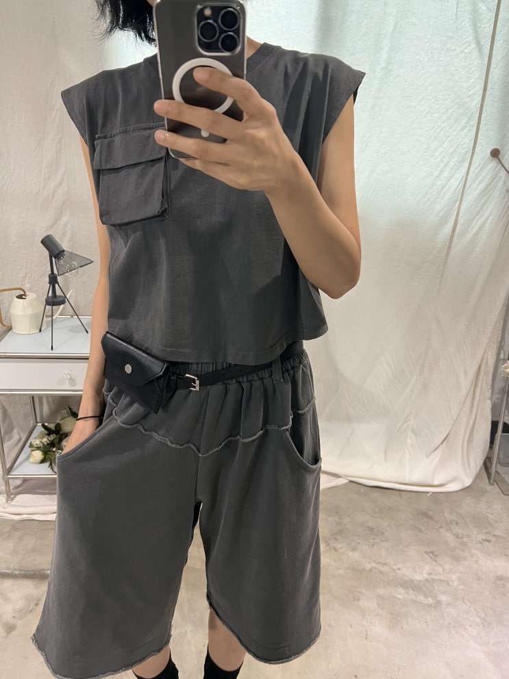 피그먼트 민소매 티 밴딩 5부 와이드 팬츠 여름 캐주얼 셋업 더워도 세련되게~ 편안한 캐주얼 여름 셋업! ...