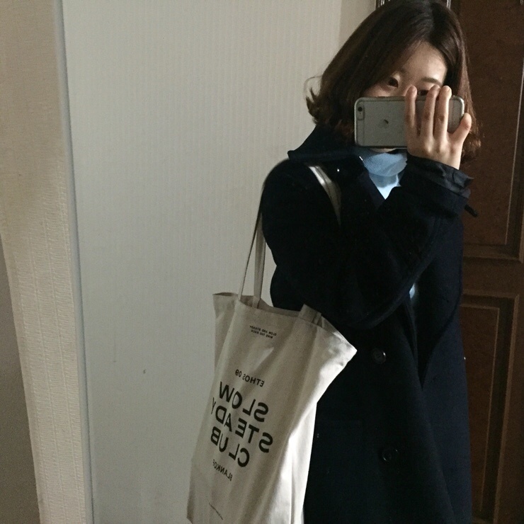 데일리룩 :: 톰보이 코트 , 톰보이 하이넥코트, 롱코트코디, 슬로우스테디클럽 에코백 , 리워니로그