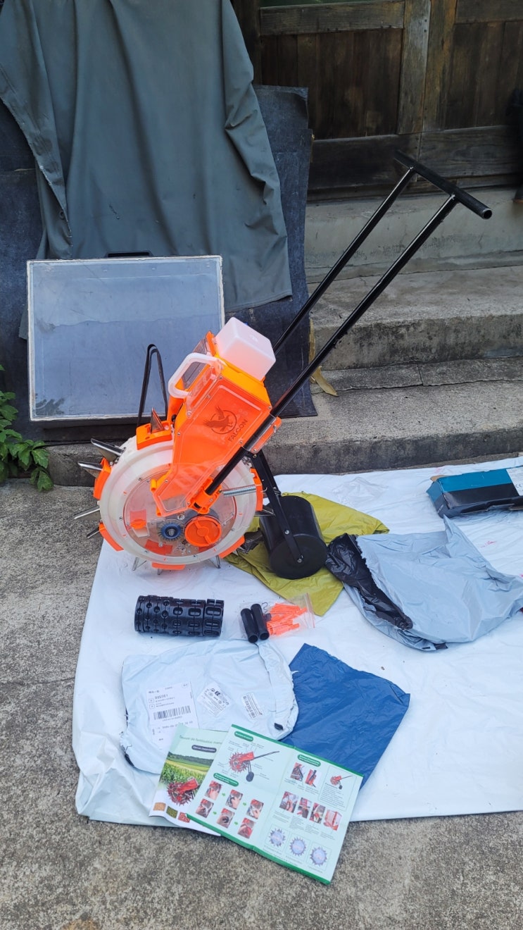곡물파종기, 브러시리스 멀티커터, 에어필터, 활성탄소필터( 농사용 관리기 오일크리너용), 에어혼 셋, 에어혼모터, 슬리퍼, 손가락 지지대 도착
