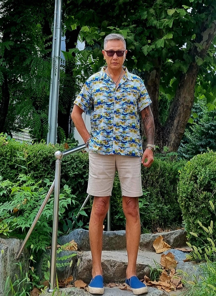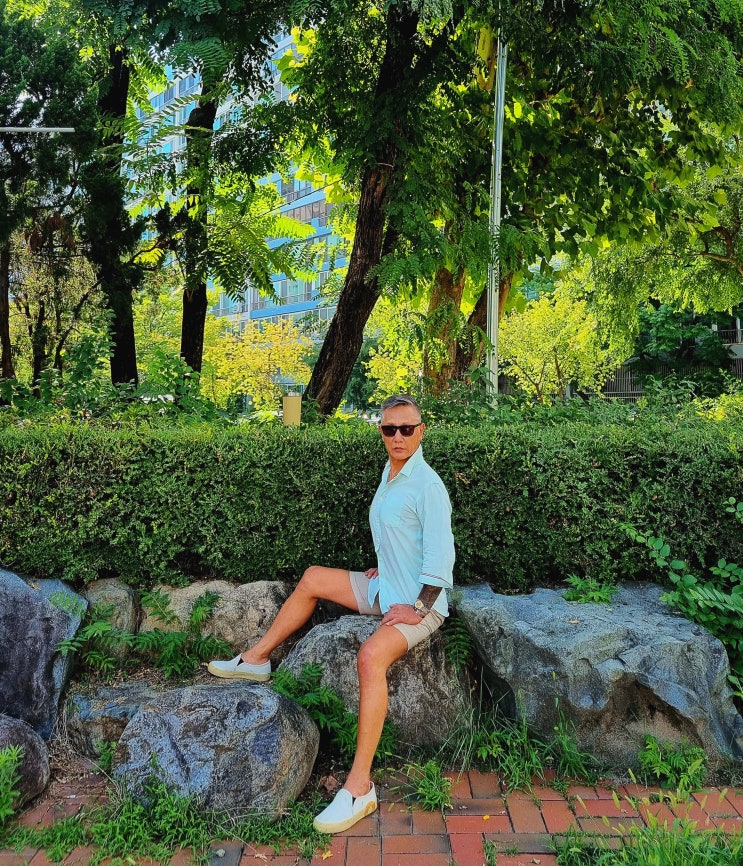 불량소년 2025년 8월 1일 금요일~3일 일요일 교회 여름 수련회 집회 청도 신화랑 풍류마을에서 데일리룩(민소매 나시 셔츠,반바지 쇼트 팬츠,쪼리 샌들,슬립온,리넨 후드 셔츠)