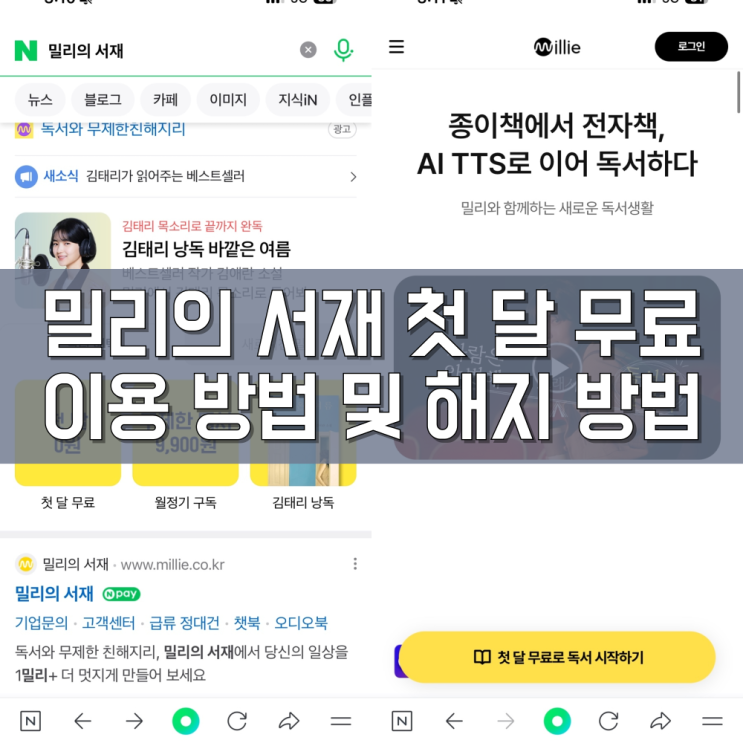 밀리의 서재 구독권 첫 달 무료 이용 방법 및 해지 방법