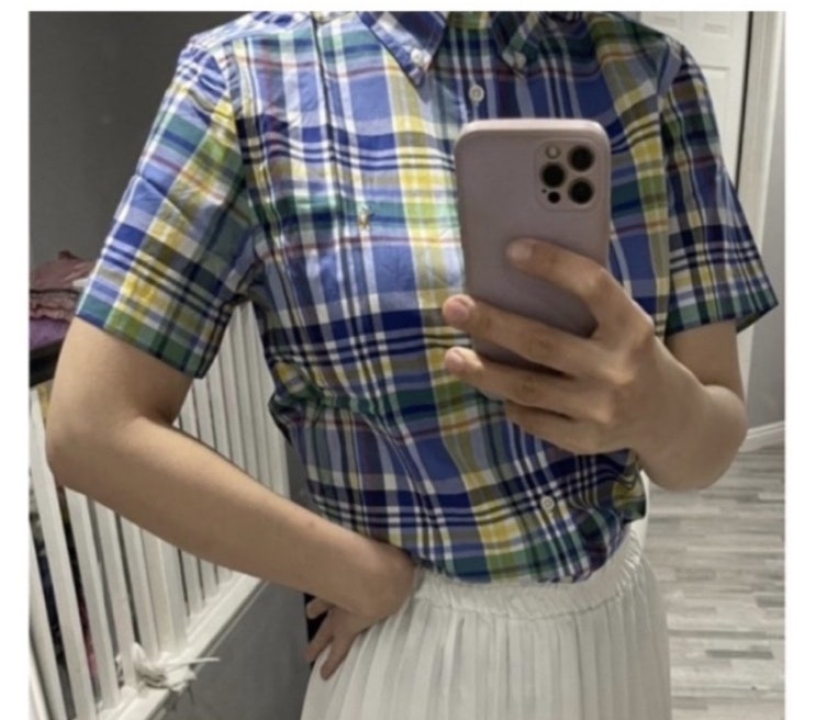(할인 판매중)가격내림!!성인여성가능!!폴로 보이즈 블루톤 체크 반팔셔츠43000원^^