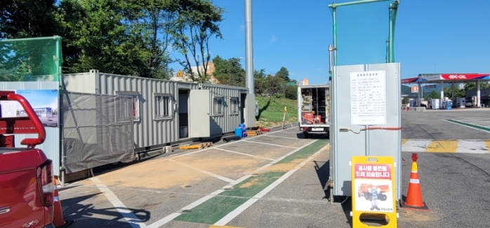 휴게소 내 수소충전소 건설현장 CCTV 시공후기 사진 속 멀리 보이는 Ex-oil에서 촬영장소가 고속도로 ...