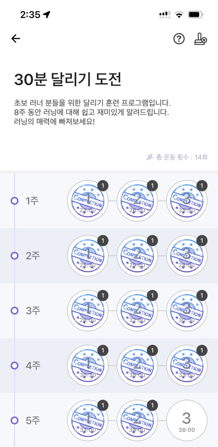 4월 달리기가 마무리 되었다.. 그래도 반이상 달려서 도장 16번 찍었네... 30분달리기 8주 프로그램 이제 3...