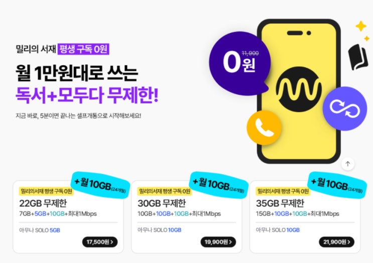 안녕하세요 IT 블로거 하루집사입니다. 오늘은 알뜰폰 요금제 추천 kt M모바일 밀리의서재 합리적인 선...