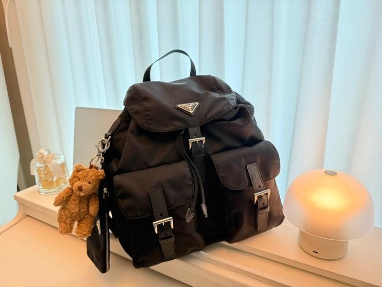 프라다 백팩 미듐 블랙 후기 + 프라다 백팩 미듐 베이지 착샷 - 명품 기저귀가방 추천