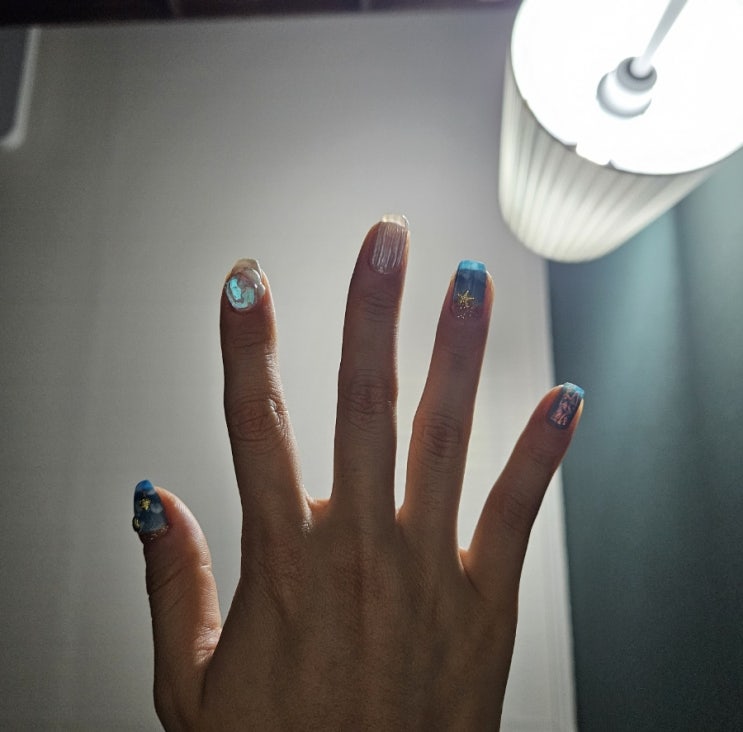 여름이 되니 실버가 땡긴다 그래서 했다. 심플하게 흰 바탕에 실버 파우더 올렸다 손톱에 사진 찍는 내가 ...