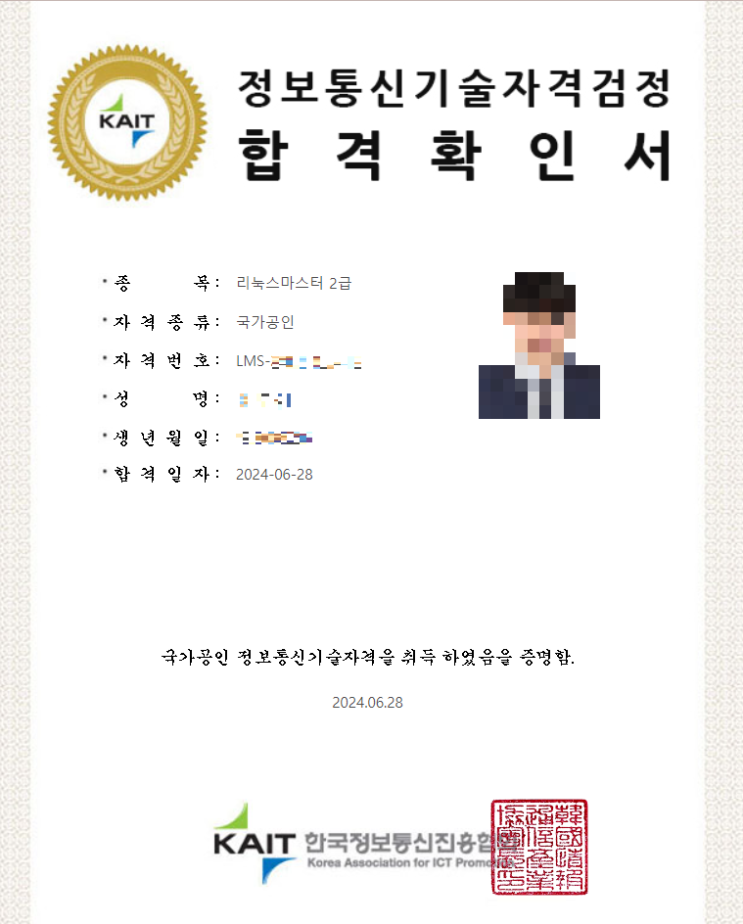 안녕하세요. 오늘은 리눅스 마스터 2급 독학 하여 자격증을 취득했기에 '어떻게 공부를 했는지' ...