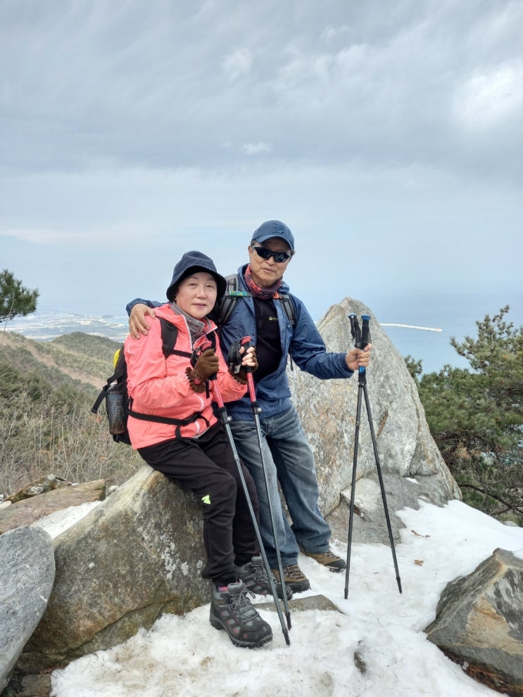 남산제일봉에서 바라본 가야산 정상엔 아직도 흰눈이 쌓여있고 ..