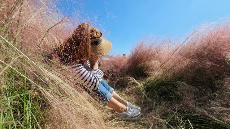 여기는 거제면 핑크뮬리 지금 핫플! 작년과 다르게 올해 새로 개방한 거제섬꽃축제의 뮬리밭입니다. 저는 ...