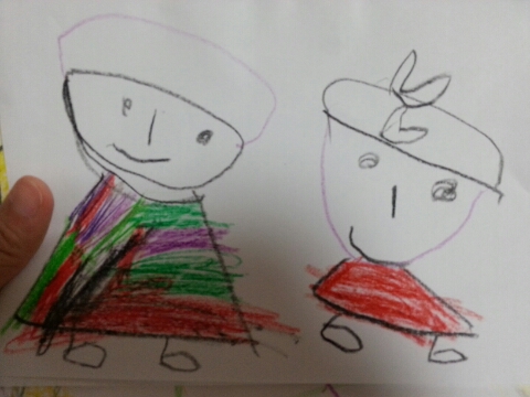 이아이가 언제부턴가 사람을 그리기 시작했는데.. 언니가 있어서 인지 네살아이의 사람치곤 너무 잘(?)그린...
