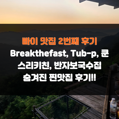 안녕하세요. 오늘은 태국 빠이 맛집후기 2번째를 요약드립니다. ^^ 한줄 요약 : Tub-P라는 곳은 근시일내...