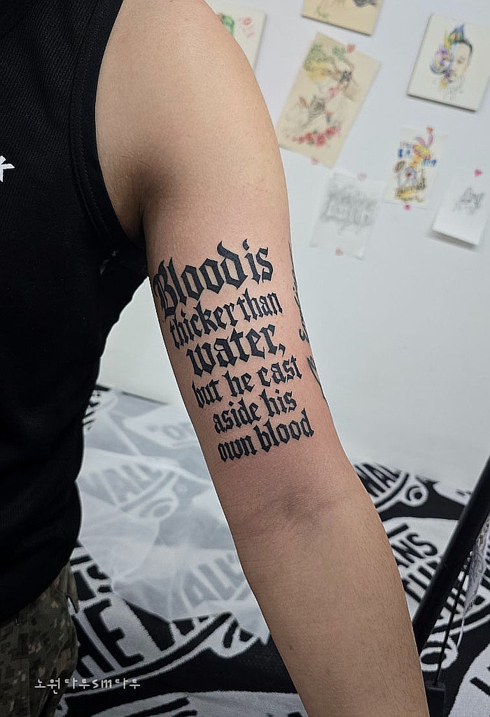 팔레터링 타투란 팔(arm)에 문구(lettering)를 새기는 타투 말 그대로, 글자(레터링)를 중심으로 구성된 타...