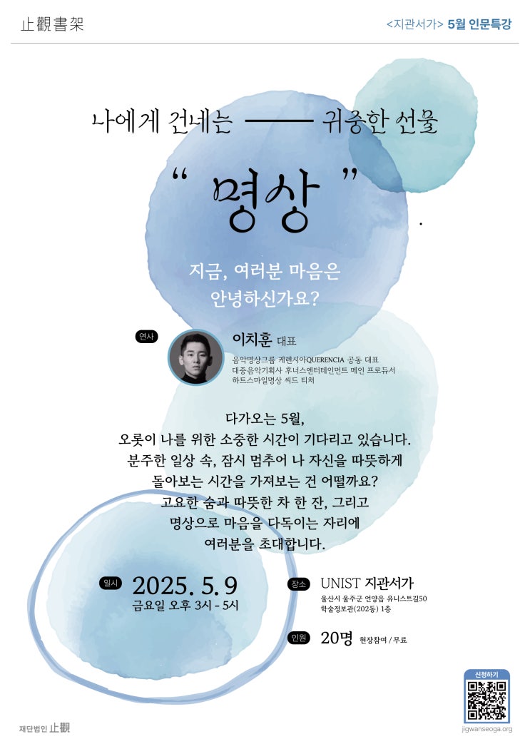 지관서가 5월 인문특강 <나에게 건네는 귀중한 선물 - 명상" >