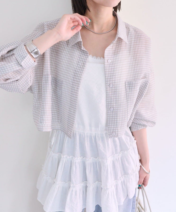 [50%세일] 시어 크롭 셔츠 체크
