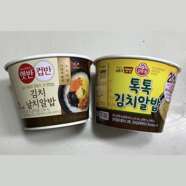 CJ햇반컵밥 김치날치알밥과 오뚜기 톡톡김치알밥 비교하기 #컵밥비교 #아무도 #안물안궁 #나만궁금