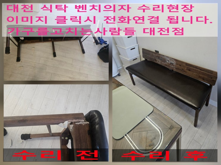 [대전 가구수리]부서진 부러진 파손된 식탁 벤치의자 수리 현장~~!