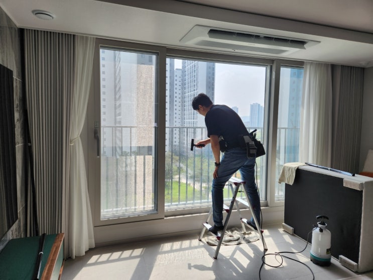 평범한 사무실 유리 칸막이, 강화 도어 하얀색 물방울 무늬 그라데이션 시트지를 활용하면 불필요한 시선은...