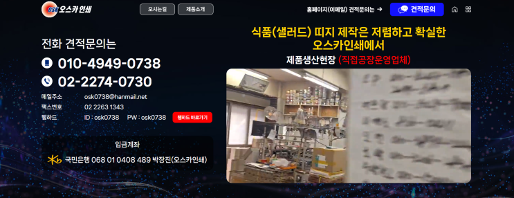 인쇄소홈페이지 제작 인쇄물홈페이지 신규 제작 업체 오스카인쇄