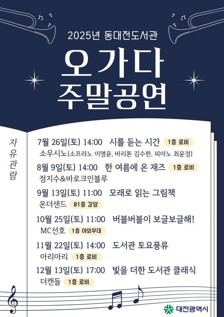 [대전] 2025년 동대전도서관 오가다 주말 공연 안내 무료