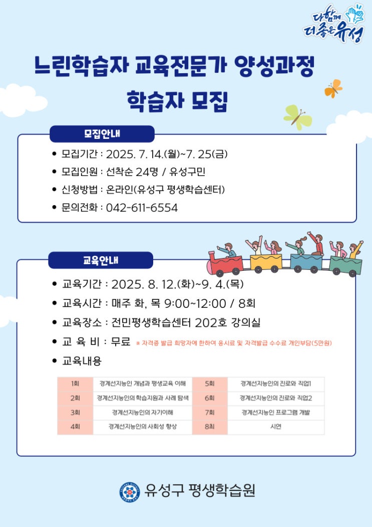 안녕하세요~아빠탱입니다~ 대전 유성구 평생학습원에서 느린학습자 교육전문가 양성과정 글이 올라와 있네...