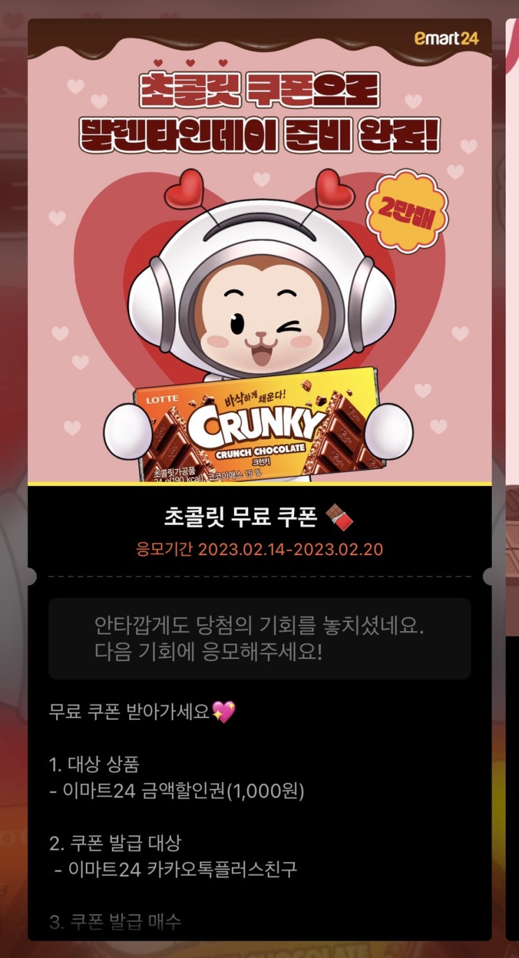 이마트 24 발렌타인데이 초콜릿 쿠폰(즉당.카톡)