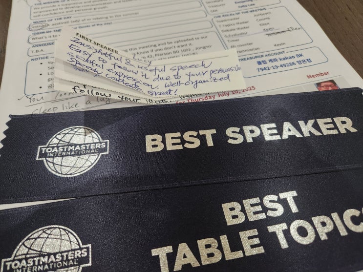 오래만에 토스트마스터즈 활동 이야기 남깁니다. 토스트마스터즈 (Toastmasters) 전 세계적으로 운영되는 ...