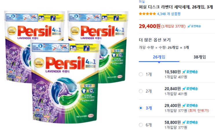 퍼실 디스크 라벤더 세탁세제, 26개입, 3개
