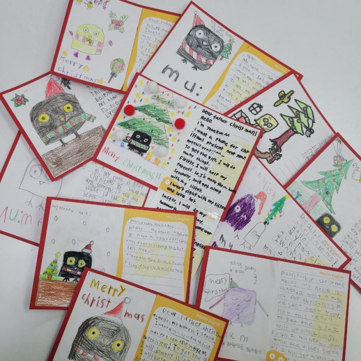 내손동 뮤엠영어의 마스코트 '뮤' 싼타 할아버지께 카드를 써보는 시간을 가졌어요. 영어 공부 ...