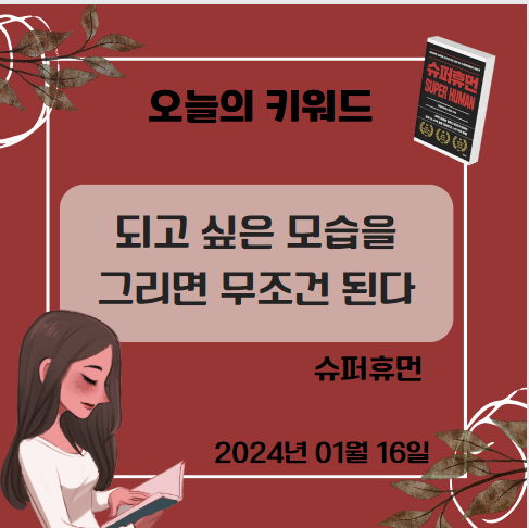 2024년 01월 16일 되고 싶은 모습을 그리면 무조건 된다 오늘의 자기계발 도서 김도훈의 [슈퍼휴먼] 바닥부...