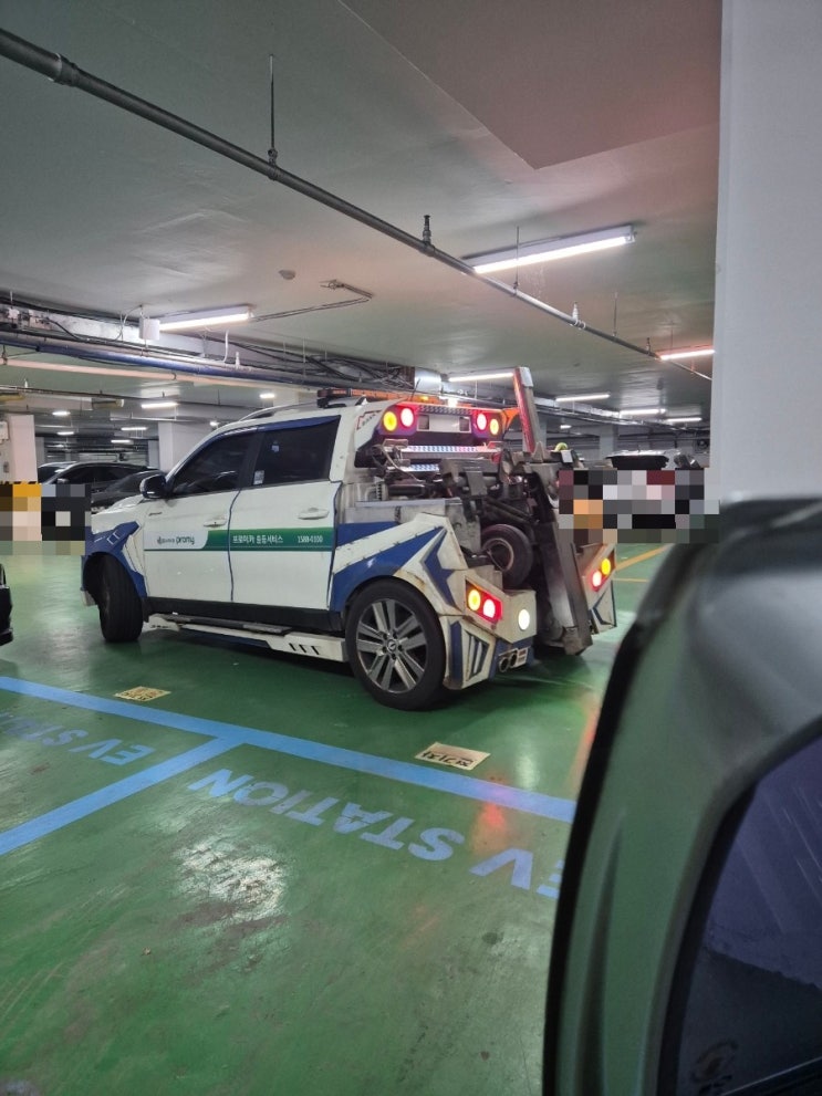 자동차에 이상이 생겼다! 운전좌석 앞 타이어가 뭔가 바람이 없어보였다. 육안으로 봐도 다른 차들이랑 비...