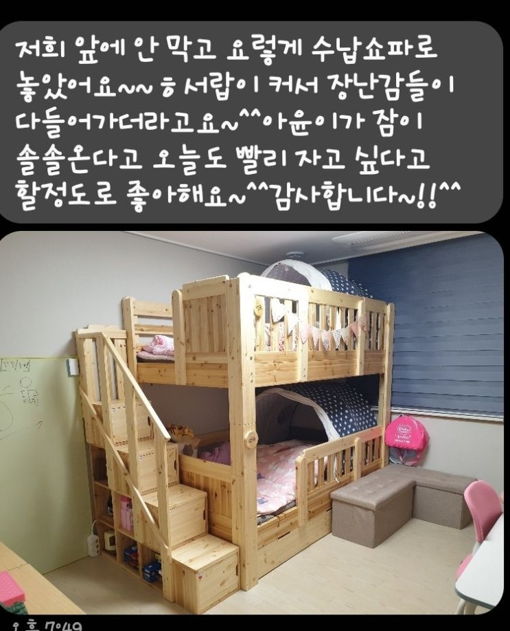 하시는 일 때문에 친정어머니 댁에서 거주하시는 중 공간이 부족해 이층 침대를 제작 요청하신 저희 고객님...