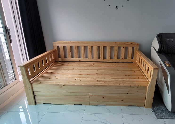 좁은 내 집 상황에 맞게 제작한 편백나무 평상형 베드 소파